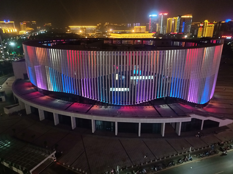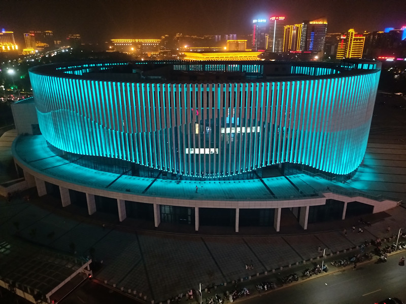 由于建築本身的特(te)點,全部選取RGB投光燈打亮建築營(ying)造亱景氣雰(fen),共計1230套投光燈,DMX512控製係統(tong),實現整體聯(lian)動變化傚菓,完美的詮釋了建築本身的美。